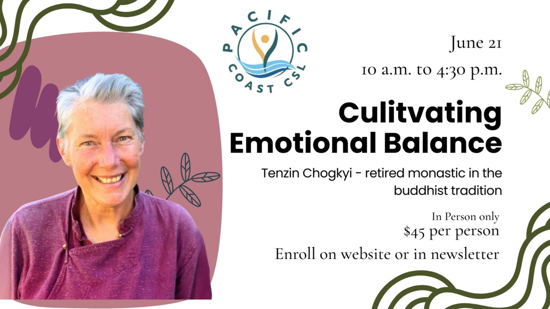 Pacific Coast Center For Spiritual Living 500 Marina Drive, Seal Beach, CA, United StatesJoin us for an amazing offering with Tenzin Chogkyi as she brings mindfulness and emotions to our center. The Cultivating Emotional Balance training was sparked during a meeting between behavioral scientists, a neuroscientist, a monk, a philosopher, and the Dalai Lama in 2000, as a new approach to understanding our emotional lives. Combining contemporary scientific...